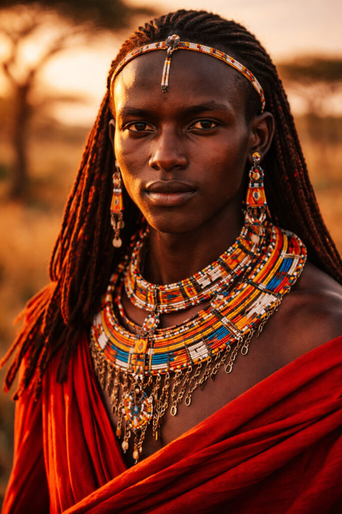 In der Weite der ostafrikanischen Savanne steht der Moran als Symbol für Mut und kulturelle Beständigkeit. Dieses Porträt fängt nicht nur die prächtige Ästhetik der handgefertigten Perlenschmuckstücke ein, sondern vor allem die unerschütterliche Würde eines Mannes, dessen Identität tief in den Rhythmen der Natur und den Ahnenreihen seines Volkes verwurzelt ist. Ein Blick, der Generationen überbrückt.